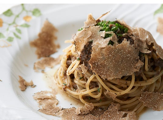 ブラウンマッシュルームの旨味を凝縮したソースに秋トリュフを添えたパスタです。