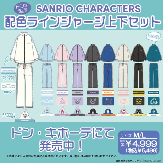 サイドにサンリオキャラクターズ配色ロゴ・ラインが入った長袖トラックジャケットとロングパンツの上下セット。各キャラクターのイメージを落とし込んだカラーリングがとってもCUTE(ハート)。お友達や恋人とオソロコーデを楽しんでみて下さい! ※専用ハンガー付き