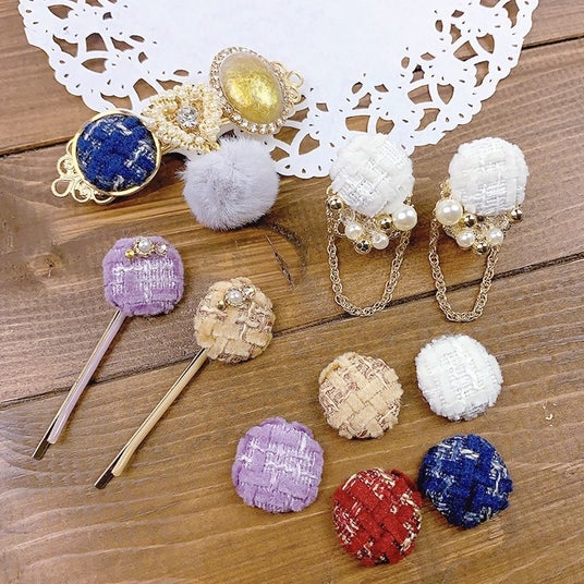 毎年人気の定番パーツ、エコファーボールとツイードパーツに新作が登場しました。 扱いやすく、コロンとしたシルエットで素材感を楽しめるエコファーボールと、シックな可愛らしさを演出できるツイードパーツです。