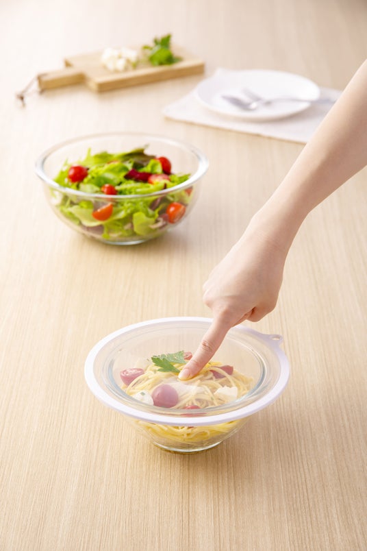 指で「ポン」と押すだけで簡単密閉できる「シリコーン製フードカバー」。軽くて扱いやすいので、余った料理の保管や下ごしらえの一時保存も「かぶせて、ポン」。いちいちラップをする手間が省けるので、ゴミも削減。耐熱性に優れたシリコーン製で電子レンジや食洗機にも対応。また、モジュールがぴったり合うように計算し尽くされた設計で、軽くてスタッキングができる食器「軽スタ」との相性も抜群です。