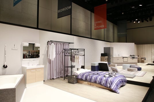 発表会ではカインズオリジナル商品の展示に加え、会場内に「庭」「玄関」「キッチン」「リビング」「寝室」「風呂・洗面」とくらしのシーン別に6つの空間を用意。カインズオリジナル商品を使い、実施にご来場いただいた方をステージに巻き込んでいく「イマーシブ体験」を取り入れた群像劇「くらし ららら劇場」を上演しました。