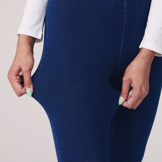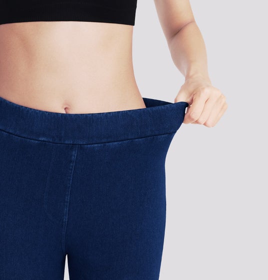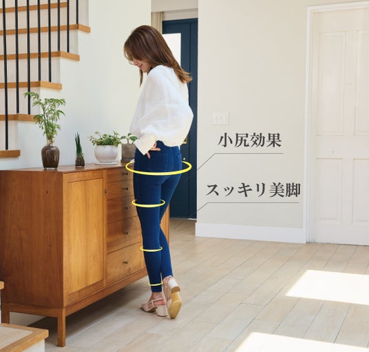 見た目はデニムなのに着圧効果によって気になる部位をぎゅぎゅっと引き締め、