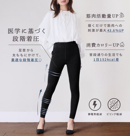 『着圧デニムパンツ』は、ファッションを楽しみながら「細見え」と「下半身ケア」を、これ1枚で完結させます。