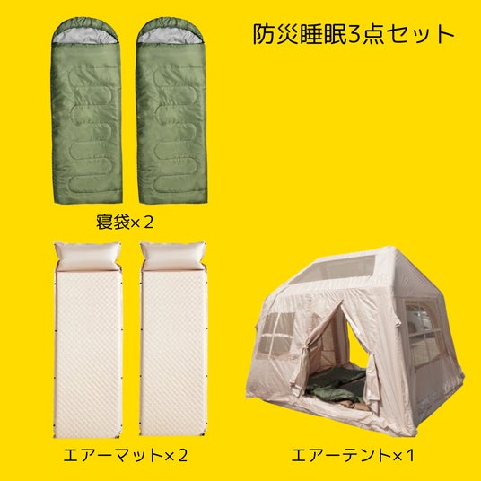 エアーテントは個別の空間を確保し、避難生活においてプライベートな時間を守ることができます。また、エアーマットと寝袋は、快適な睡眠環境を提供し、避難者の心身の疲れを癒します。
