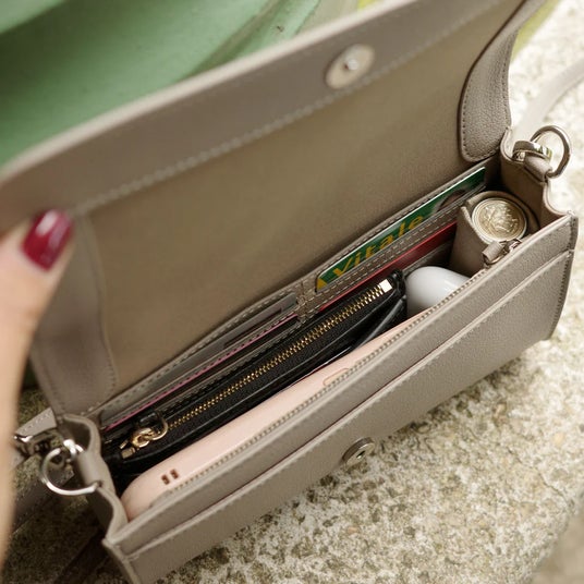 ・あらゆるシーンになじむコンパクトでエレガントな見た目ながら、スマホやイヤホン、リップ、ハンカチ等の小物類はスッキリ収まる容量。