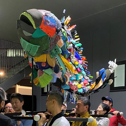 ゴミや漂流物を使い、様々な作品を制作するアーティスト「淀川テクニック」が地元なんばで拾ったゴミも使って、子どもたちと「秋祭り」をテーマにしたサステナブルアートを作ります。
