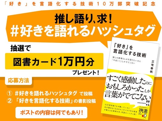 株式会社ディスカヴァー・トゥエンティワン(本社:東京都千代田区、代表取締役兼社長執行役員:谷口奈緒美)刊行の、三宅香帆氏による書籍『「好き」を言語化する技術』が10万部を突破したことを記念し、