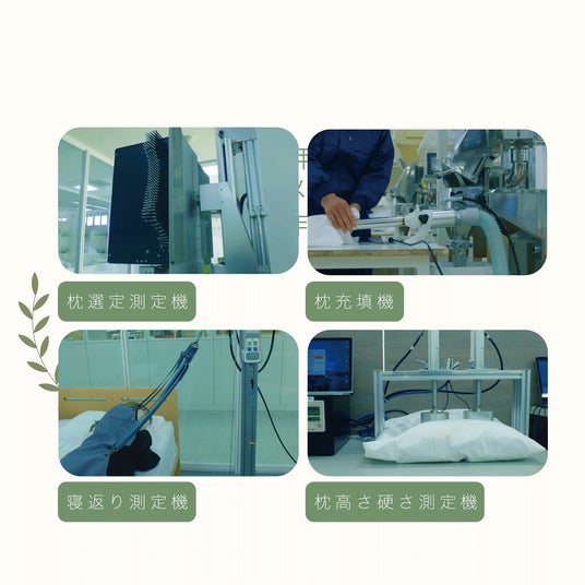 東京工業大学と共同開発した枕選定測定器をはじめ、当社独自の測定器や機械を用いてこだわり抜いた枕を作っています。