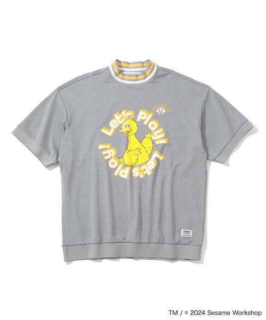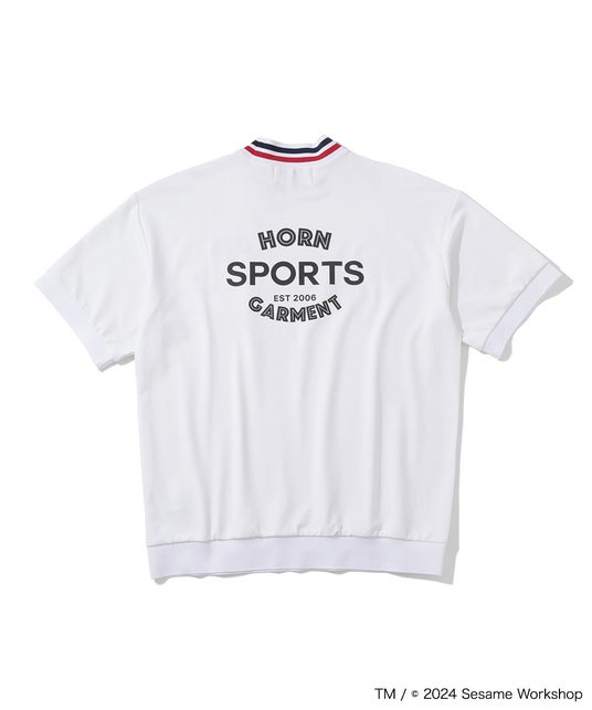 フロントにはストリートテイストに仕上げたセサミストリートアートのグラフィック、背面にはHORN SPORTS GAMENTのロゴ、左胸にはブランドアイコンが刺繍されたモックネック。リサイクルポリエステルのスムース生地で、防透け、紫外線防止、吸水速乾の機能素材となっています。