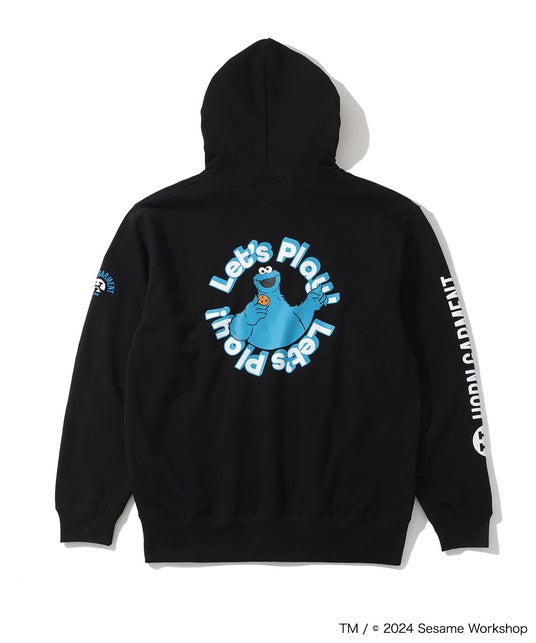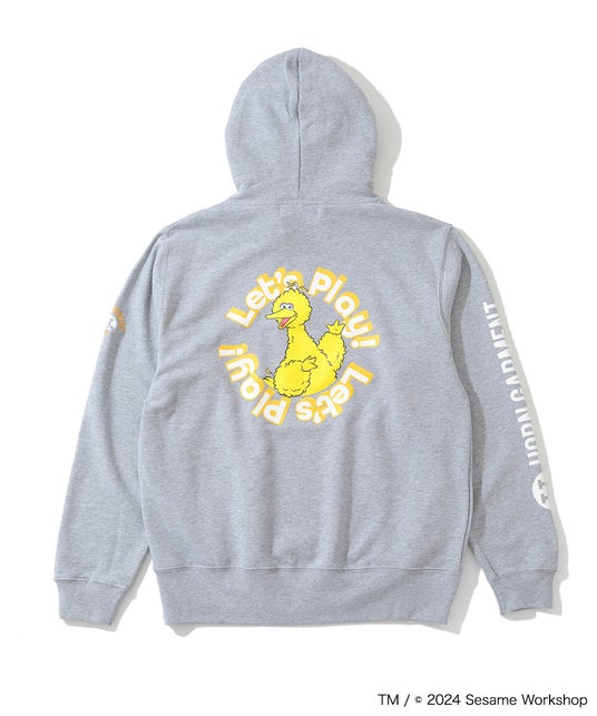 左胸と両袖にブランドアイコンを刺繍し、背面にはストリートテイストに仕上げたセサミストリートアートのキャラクターグラフィックをプリント。吸水性の高い裏パイル素材で、肌触りも抜群です。