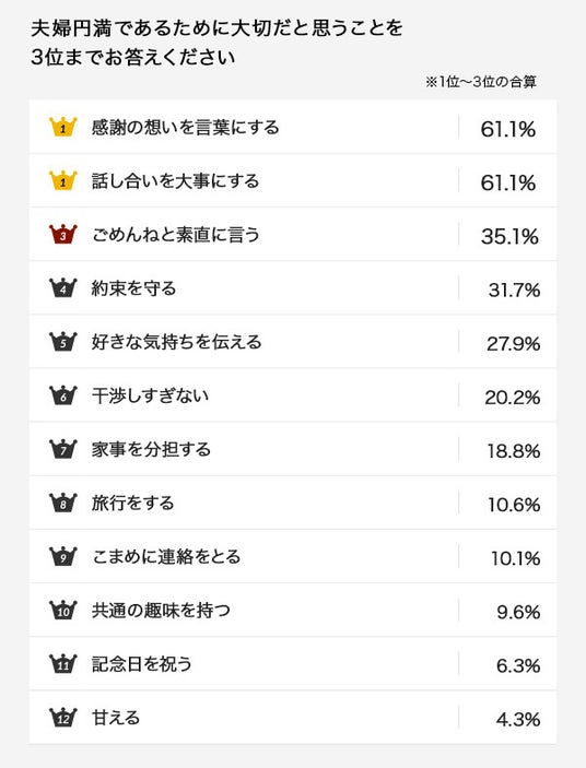 夫婦円満の秘訣は“言葉にして伝えること”を61.1%の方々が重要視