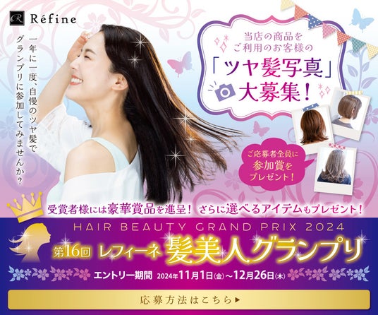 スヴェンソングループの株式会社スヴェンソン(本社:東京都港区、代表取締役社長 児玉義則)Cosmetics Marketing事業部は、2024年11月1日(金)よりレフィーネ公式オンラインストア内(https://www.8341.jp/)にて、 第16回『レフィーネ 髪美人グランプリ』を開催いたします。