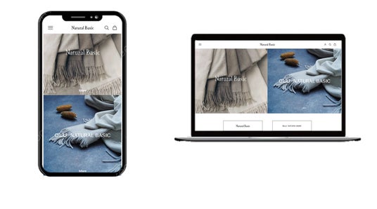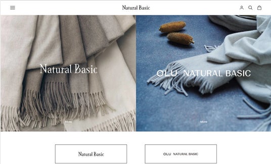 サイトに来訪したお客様にNatural BasicとOLU NATURAL BASICを選択することで、それぞれの商品ラインナップにアクセスしやすい設計としています。シンプルさと洗練さを体感できるページデザインとしています。