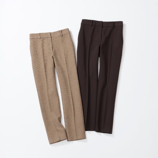 脚をスラリと見せるパターンと快適なはき心地を実現するストレッチ性、最適な一本が見つかる豊富なサイズ展開に自宅で洗える手軽さと、はくだけで美脚が叶うのが「PLUS STYLEパンツ」です。様々な素材やシルエットのバリエーションが揃っています。