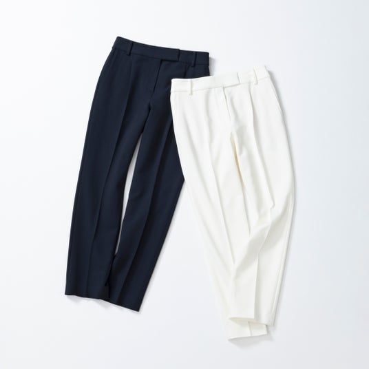 「PLUS STYLEパンツ」の中で、秋冬人気No.1を誇るのが「ウォームリザーブ」素材を使ったパンツです。東レ株式会社と共同開発した吸湿発熱性や保温性の機能を持つ素材で、暖かさと動きやすさを兼ね備えたプラステの秋冬人気No.1シリーズです。一枚着るだけで暖かく着ぶくれしにくいため、秋冬にもスマートな着こなしをお楽しみいただけます。