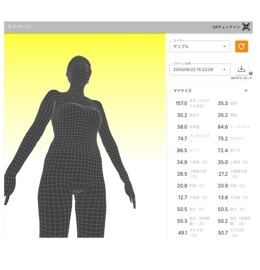 Karada3D マイページ – 3Dメッシュデータと採寸項目