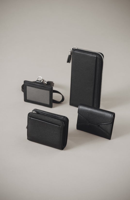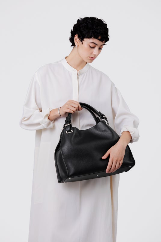 張りのある柔らかな手触りが魅力のロングセラー「クラルテ」シリーズより、オン・オフの他、オケージョンにも活躍する「ブラック」が登場。すっきりとした印象になるよう、金具には「シルバー」を使用。また「クラルテ」シリーズのふっくらと柔らかな雰囲気も感じられるように、内装生地と小物の付属革には「グレー」を合わせました。