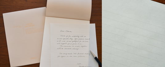 ペン走りが滑らかで緻密で張りのある《バンクペーパー》は罫線入り。