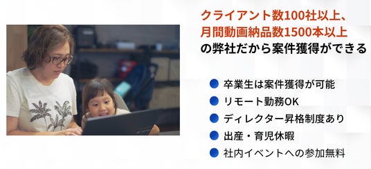 当スクールの卒業生は、そのまま弊社の動画編集者として働ける環境を提供しています。