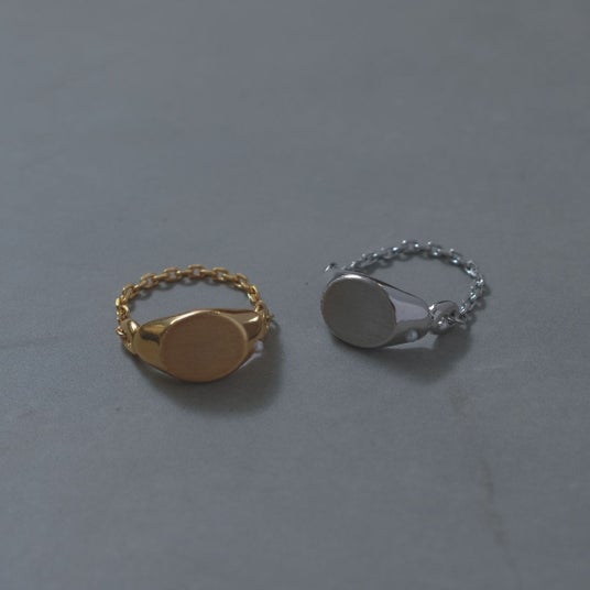 リングは、チェーンとの組み合わせにより従来のリングの概念を革新し、自由なスタイルを提案。マットな質感と小粒のパールが控えめながらも存在感を放ち、大人の洗練された魅力を引き出します。パールは全てを埋め込まずに少し表面に出るようなデザインで、堀のこだわりが感じられるディテールに。