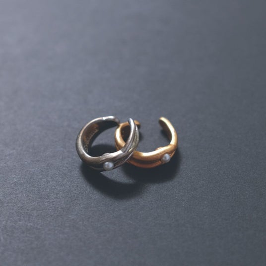 リングと同様に、イヤーカフにも上質な素材感と洗練されたデザインを取り入れました。マットな質感に仕上げた表面は、光を柔らかく反射し、耳元を華やかに彩ります。