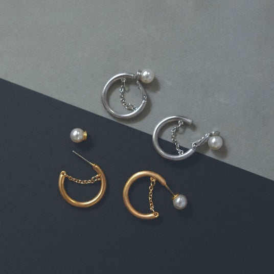 ピアス・イヤリングは、あなたの個性を際立たせるためのアイテム。パールが耳の後ろにくるように設計し、フープを繋ぐ繊細なチェーンをセッティング。大胆にアレンジした独創的なデザインは、どの角度からも美しさが際立ちます。どんなコーディネートにも合わせやすく、高級感のある素材と丁寧な作り込みが、ワンランク上のスタイルを叶えます。
