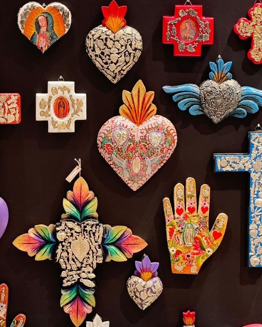 ミラグロは「奇跡」という意味を持つ小さなチャームを、祈りや願いを込めて十字架に打ち付け、奇跡が叶うお守りとして持ち歩く民芸品。インテリア装飾としても人気。