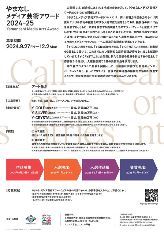 このたび、『やまなしメディア芸術アワード2024-25』の作品募集を次のとおり開始いたします。