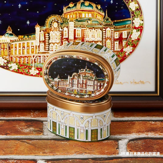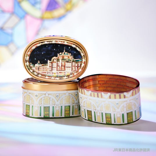 ガラス絵の東京駅をかたどったお菓子缶『東京駅缶』が新発売。大丸東京店1階 MVPスイーツ(中央入口前)にて、10月16日から10月22日まで先行販売を開始します。
