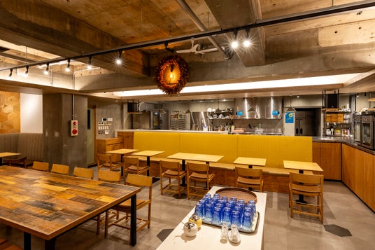 “B HONEY”では大阪梅田産のハチミツを使用したメニューだけではなく、店内のデザインもミツバチの巣穴をイメージした正六角形が多くみられます。