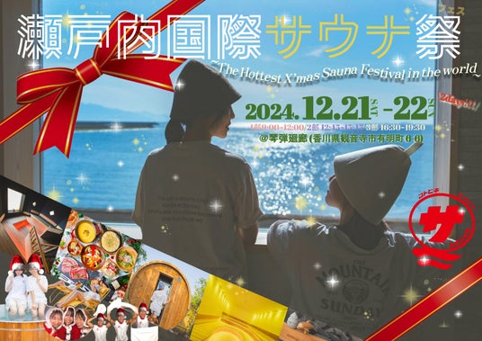 『日本の夕陽百選』『日本の渚百選』に選ばれた有明浜に面し、日本最多種の11種のサウナと7種の水風呂を持つサウナ施設『琴弾廻廊』は、12月21日・22日(土・日)に『瀬戸内国際サウナ祭 2024冬 ~世界最熱のクリスマスサウナフェスティバル~』を開催いたします。