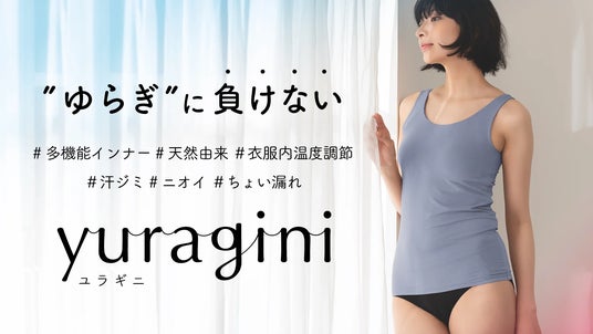 昨年開催されたフェムテックイベントにて、更年期でお悩みの方に向け衣服内の温度変化をやわらげる「調温機能付きインナー」を参考展示したところ、お客様から「商品化してほしい!」というお声を多数いただいたことから、yuraginiのブランド化が本格的にスタートしました。