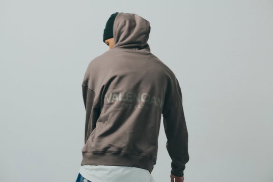VALENCIANO定番のヘビーウェイトフーディ。ゆったりとしたオーバーシルエットで縫製の細部までこだわり抜いた一枚。背面に同系色ロゴをラバープリントで施し、前面にはブランドシリコンピスを付属。