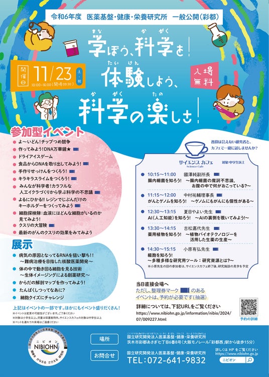 お問合せ:国立研究開発法人医薬基盤・健康・栄養研究所 TEL:072-641-9832