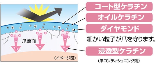 ポイント1:爪を補修・強化する3種のケラチン&透明ダイヤモンド配合
