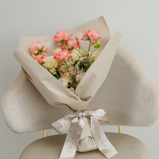 お届けする商品は、エスクリの結婚式場でブライダルフラワーを手掛ける専属フローリストブランド「ラグナプリエ」で、一つ一つ丁寧に制作いたします。「ラグナプリエ」はエスクリの主軸のフラワーブランドとして2008年にスタートして以来、会場専属のフローリストとして季節・色・ストーリーを軸に結婚式のコンセプトに合わせたオーダーメイドのフラワーコーディネートを手掛けております。