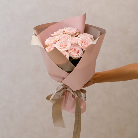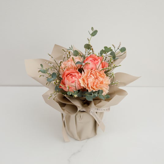 受け取った瞬間ため息が出てしまうほど愛らしいベビーピンクの花束と、見る人に明るさと幸せをもたらすアプリコットカラーの花束。