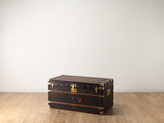LOUIS VUITTON DAMIER レザースチーマートランク1854年旅行鞄の専門店としてパリ・キャプシーヌ通りで創業したルイ・ヴィトンは、馬車旅行が主流だった時代に積み上げ可能な平らなトランクを考案。素材についても防水性の高い布生地のグリ・トリアノンを張ったトランクを開発し、当時高い評価を得ました。こちらはダミエ チェックの初期の作品です。
