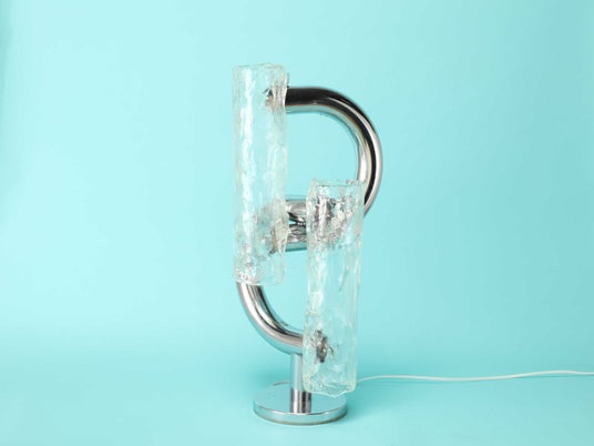 STILUX MILANOテーブルランプ1970年代推定、イタリアの高級照明メーカーSTILUX MILANO社のヴィンテージテーブルランプ。 “CHAIN” テーブルランプという名の通り、鎖状シェイプのクロムボディに手吹きのムラノガラスのチューブシェードが組み合わさった、非常にスタイリッシュなテーブルランプです。このメーカーの照明は各デザイン共に生産数が非常に少なく、なかなか市場に出ないレアなアイテムです。