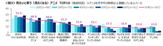20代は「SNSで話題になっていたもの」が4位で、他の年代より話題のアニメに興味を持つ傾向である。 <図3>