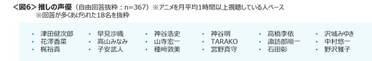 推しの声優は、俳優・歌手活動もしている人やテレビ番組に出演している人の名前が多かった。<図6>