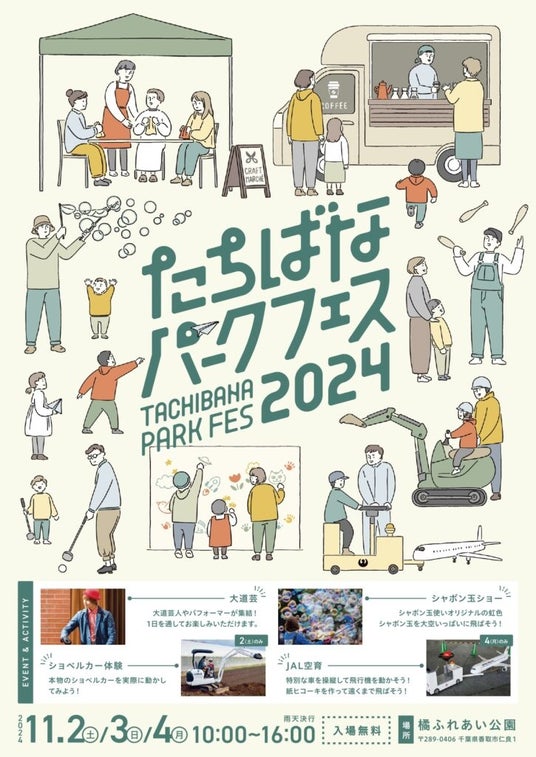 11/2(土)~11/4(月)に、橘ふれあい公園で体験型の公園イベントを開催します!