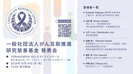 がん患者や関係者への「互助」・「推進」・「研究」・「慈善」をコンセプトとした団体の設立発表・がん研究の専門家や関係者による登壇発表