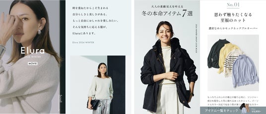 「Play fashion!」をミッションに掲げ、”グッドコミュニティ共創カンパニー” を目指す株式会社アダストリア(本部:東京都渋谷区渋谷2-21-1、代表取締役社長:木村 治)が展開する「大人女性の悩みに効く」をコンセプトとするブランドElura(エルーラ)が、2024年10月11日(金)より2024冬ビジュアルを公開いたします。ファッション誌等で活躍し、多くの大人女性から愛されるモデル・RINAさんを2024秋シーズンより継続して起用。Eluraがこの冬おすすめする名品を着用いただいた新ビジュアルが完成しました。また、Elura全店舗にて、RINAさんが登場する2024秋冬新作カタログを配布しています。