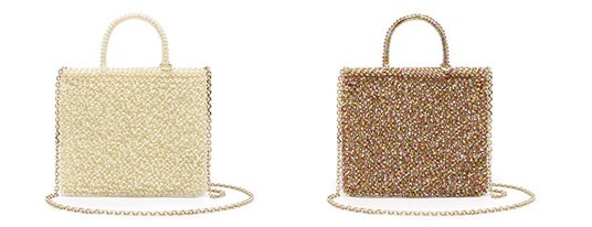 パールやビーズをワイヤーコードと一緒に編み込んだ、エレガントで可憐な印象のPERLA GLITTER(ぺルラ グリッター)。オーロラの様な繊細な艶めきと透明感が魅力的な新色「オーロラトラスパレンテ」と人気のシルバーの2色を展開。