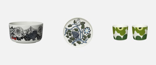 (左) Veljekset 5dl ボウル¥5,280 (中) Tiara 20cm プレート ¥5,280 (右) Unikko 2dl コーヒーカップセット ¥6,930