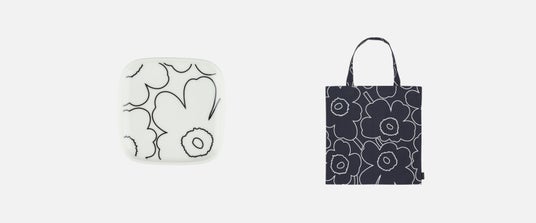(左) Piirto Unikko 10×10cm プレート ¥3,960 (右) Piirto Unikko ファブリックバッグ ¥6,600
