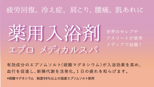 美容・健康業界で話題沸騰中のエプソムソルトを配合した医薬部外品の薬用入浴剤「エプロ」