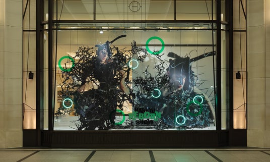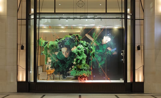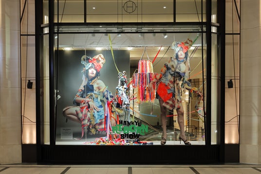 阪急うめだ本店で捨てられようとしていた古布、装飾素材、古傘、古紙、ハンガーの5つの素材を生かして作り上げた、ドレスを含めた洋服5体を展示します。捨てられるものというとマイナスなイメージが強いけれど固定概念を打破し“いかに素敵に生まれ変わらせるか”にチャレンジし、1年がかりのプロジェクトが実現しようとしています。デザインと制作は、2023年に22歳という若さでパリコレクションデビューを果たした、古着や古布を新しい洋服にリメイクして提供するアーティスト集団「再倖築(さいこうちく)」。捨てられるものにも新しい役目や使い道があるということを感じていただき、未来に向けてサステナブルな活動の大切さをウィンドー7面に思いを込めて表現します。