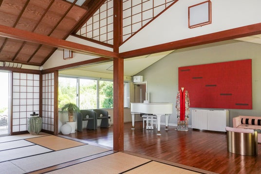 常設展示室は、居住空間を生かした“アートの家”。玄関で靴を脱いで入り、 リビングやダイニング、和室、寝室など、まるで自宅にいるかのような錯覚を覚える空間に国内外アーティストの作品を多数展示しています。床の間の草間彌生、バスルームのピカソなど、日常の中に溶け込む巨匠たちの作品をゆったりとご堪能いただけます。